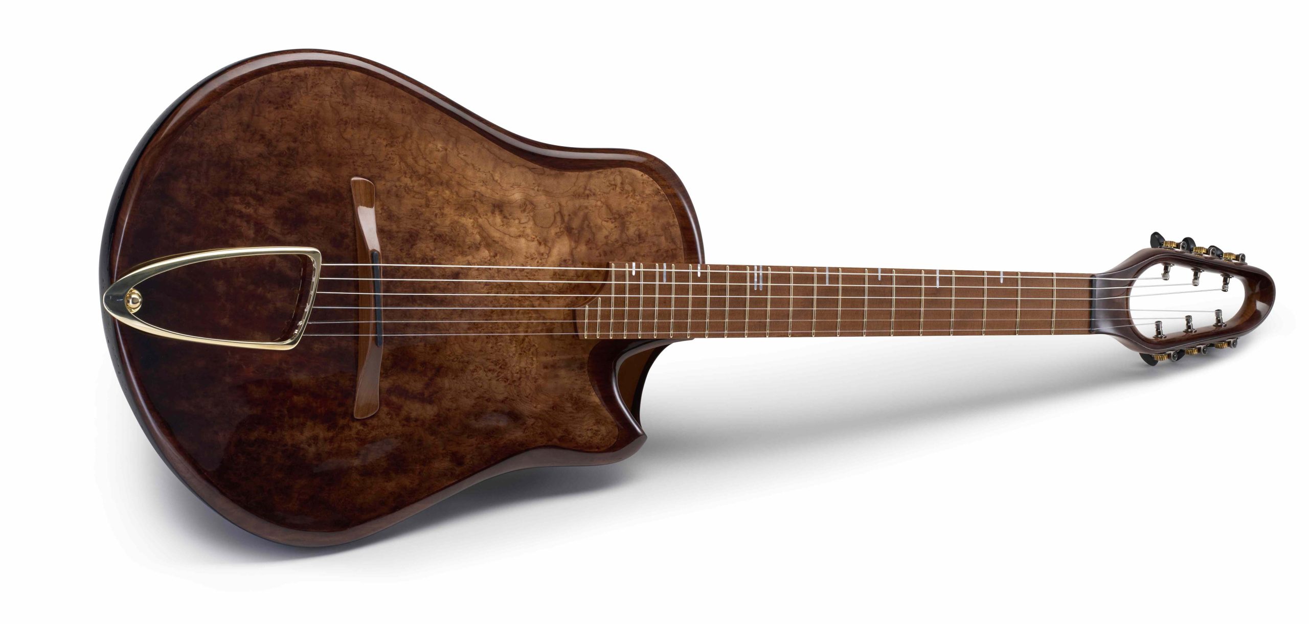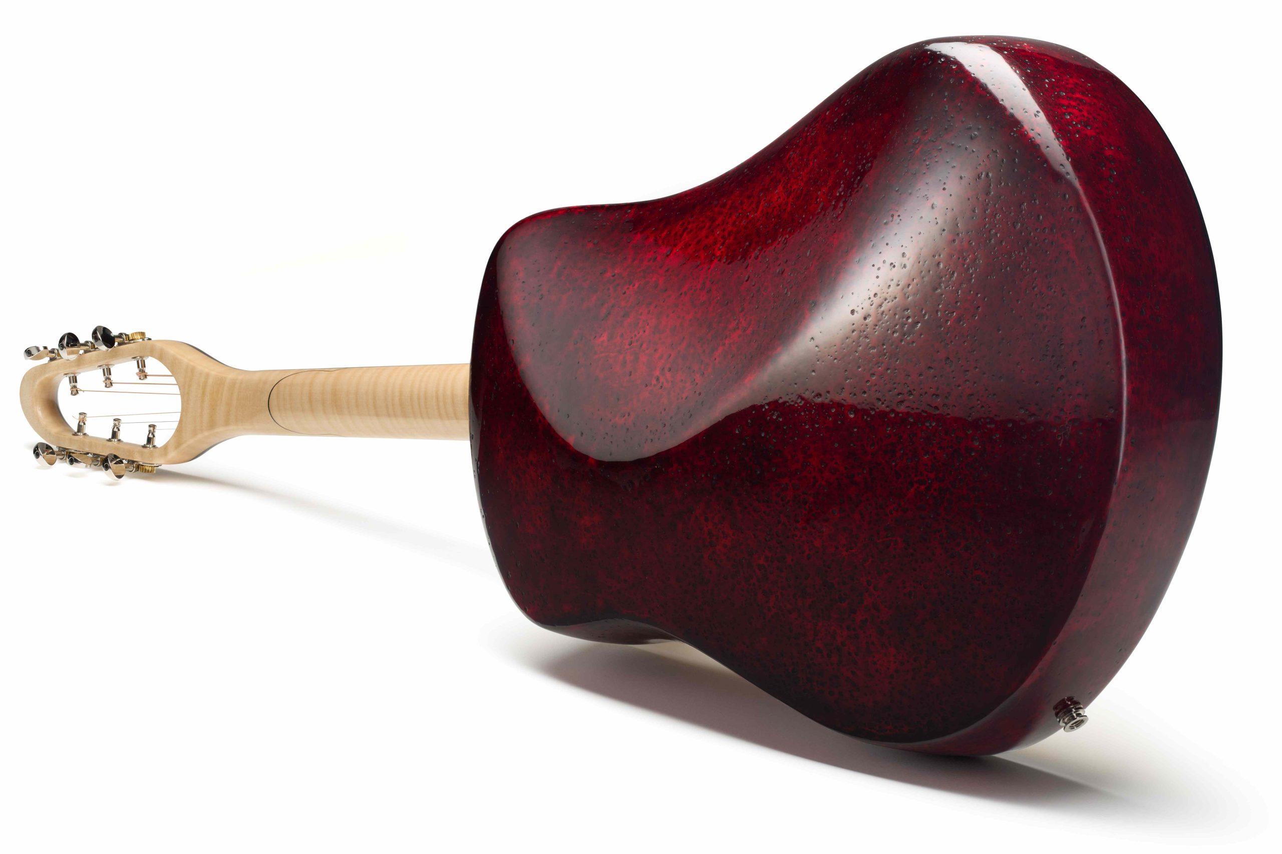 I redesigned the body shape to make the guitar better balanced and less round at the contact point to the player’s leg, which provides more grip and a more familiar playing experience while maintaining the slim feel of a roundback Canna guitar.