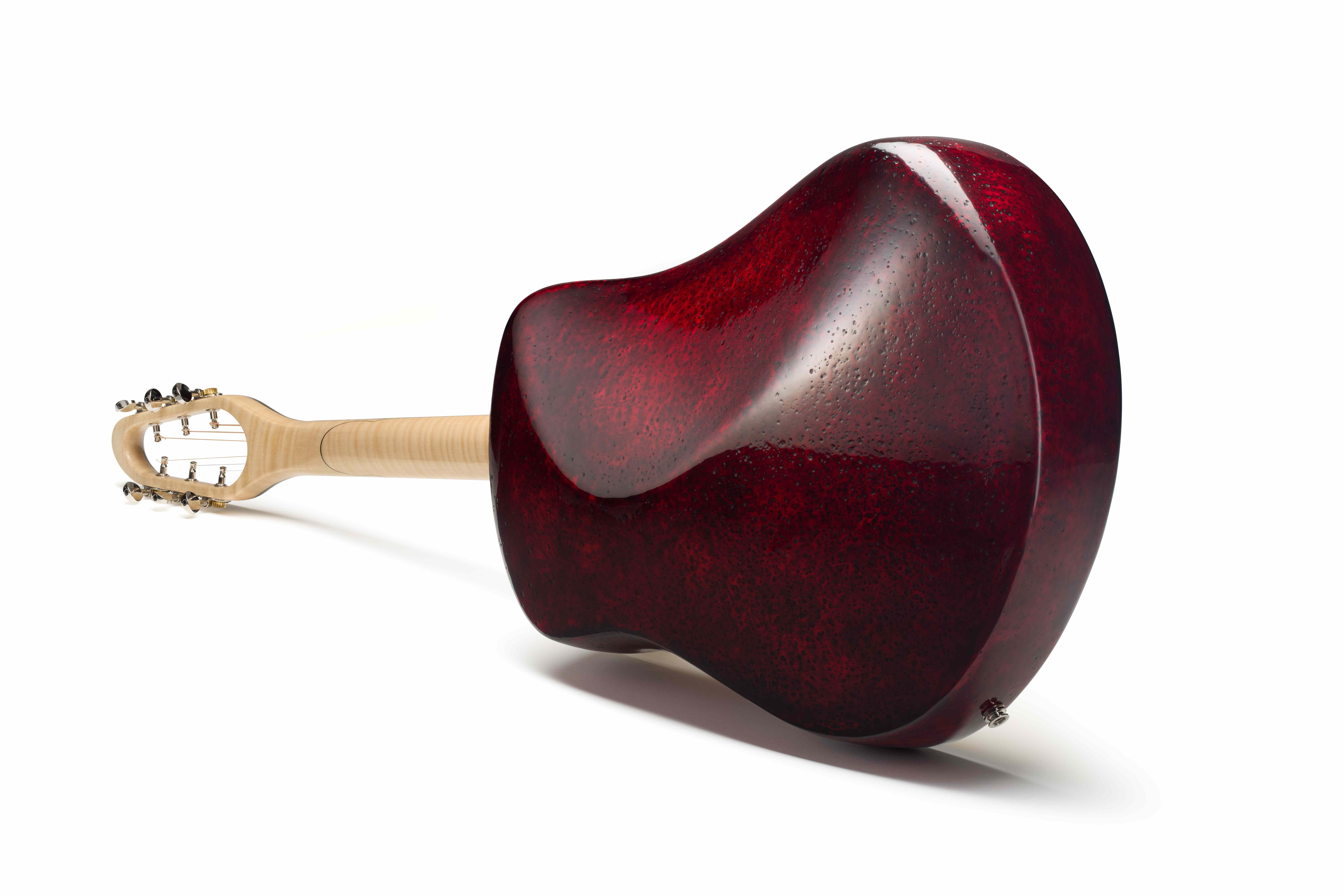 The CannaMD not only has a bigger body and therefore stronger base response, I also redesigned the body shape to make the guitar better balanced and less round on the contact point to the player’s leg.