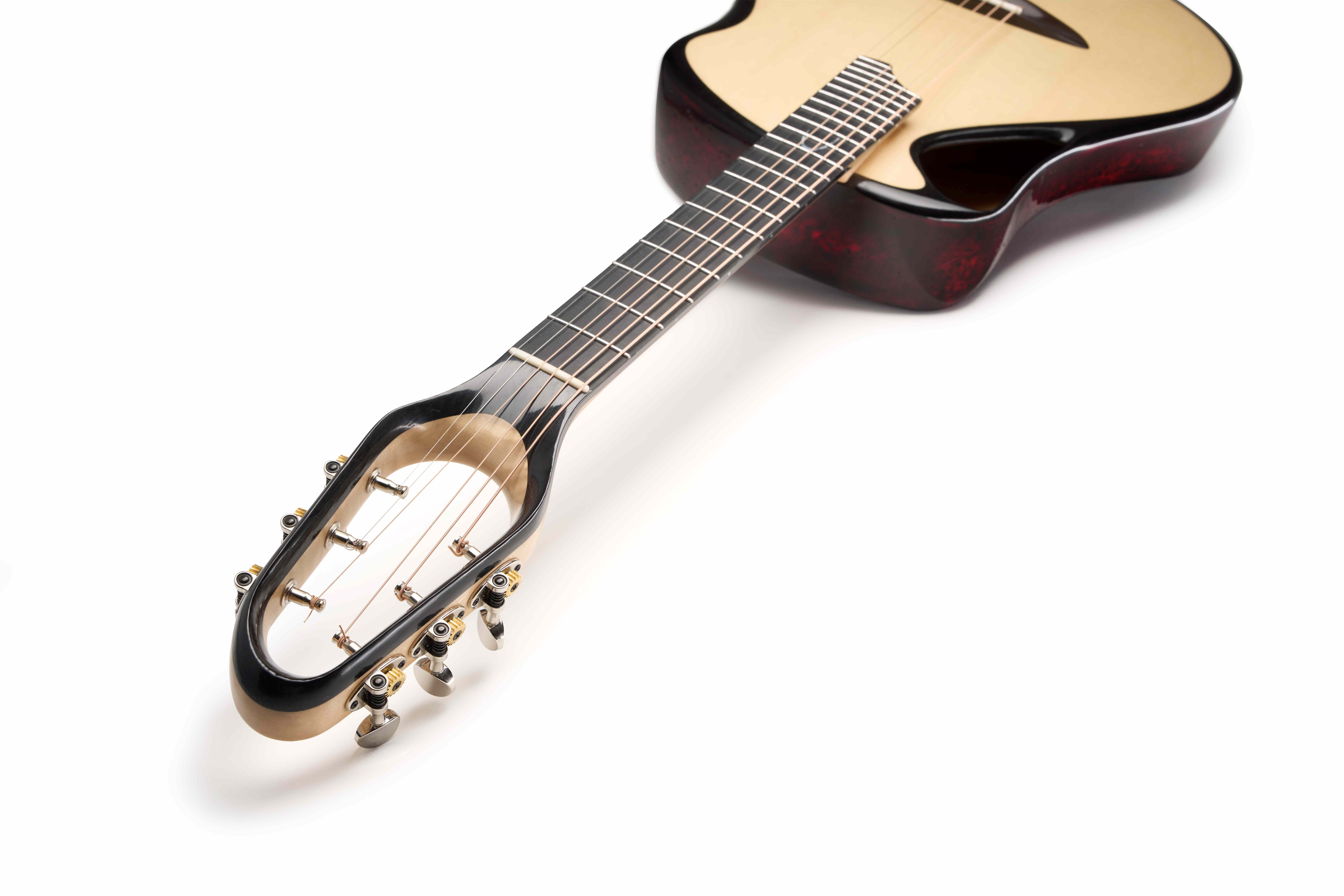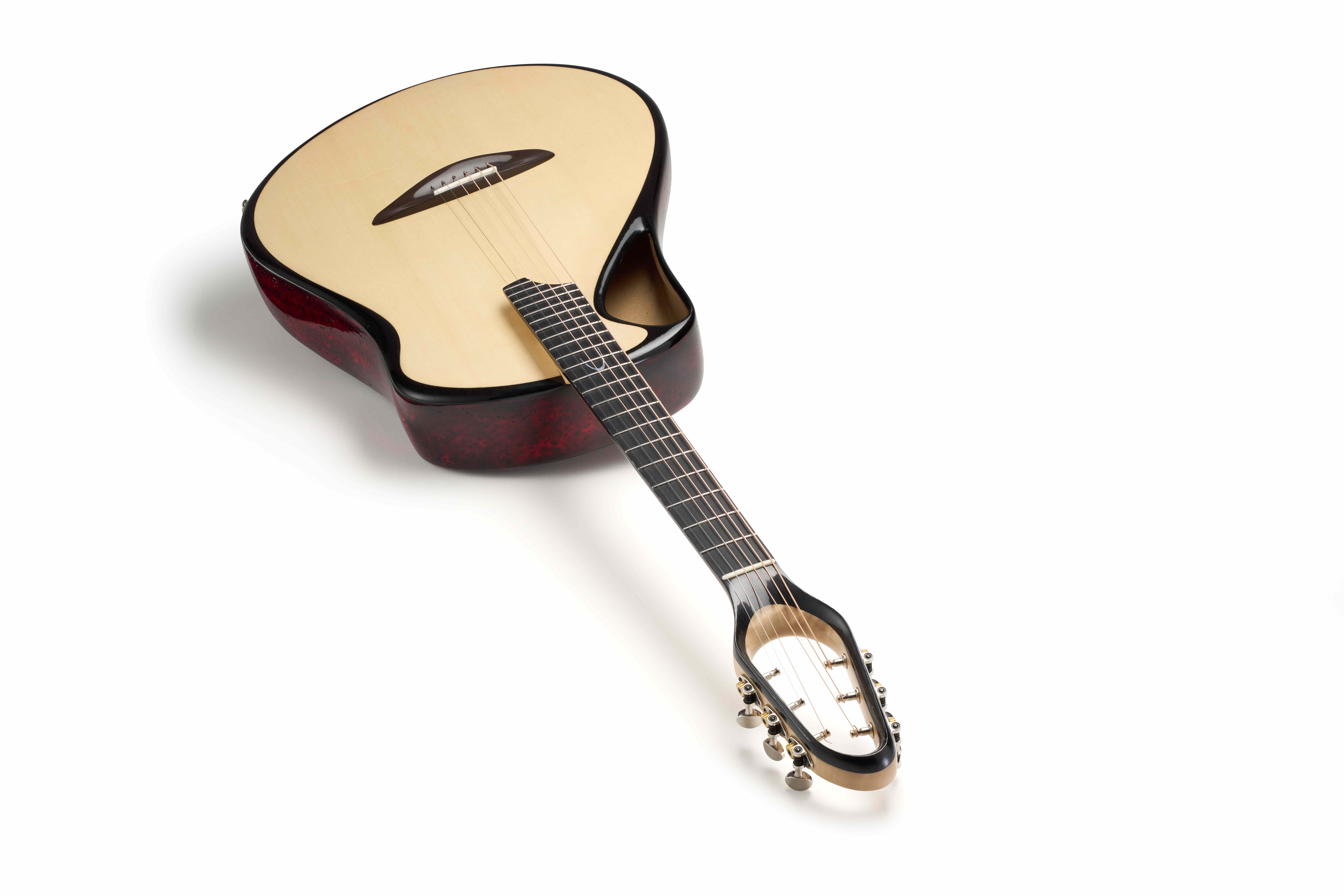 It also features a double top construction using Paulownia as a center layer. The Paulownia is laser-cut in the usual honeycomb fashion and cross-laminated with the two spruce layers. This will make the top very resistant against humidity changes.
